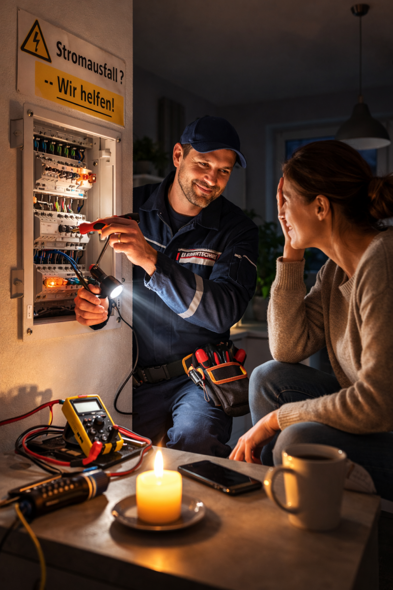 Bitte versuchen Sie bei einem Stromausfall zuerst den Sicherungskasten zu prüfen. Wenn die Sicherung immer wieder herausfliegt oder ein Kurzschluss vorliegt, kontaktieren Sie sofort unseren Elektriker Notdienst. Wir sind schnell vor Ort in Bad Kreuznach und Umgebung und sorgen dafür, dass Ihre Elektroanlage wieder sicher funktioniert.